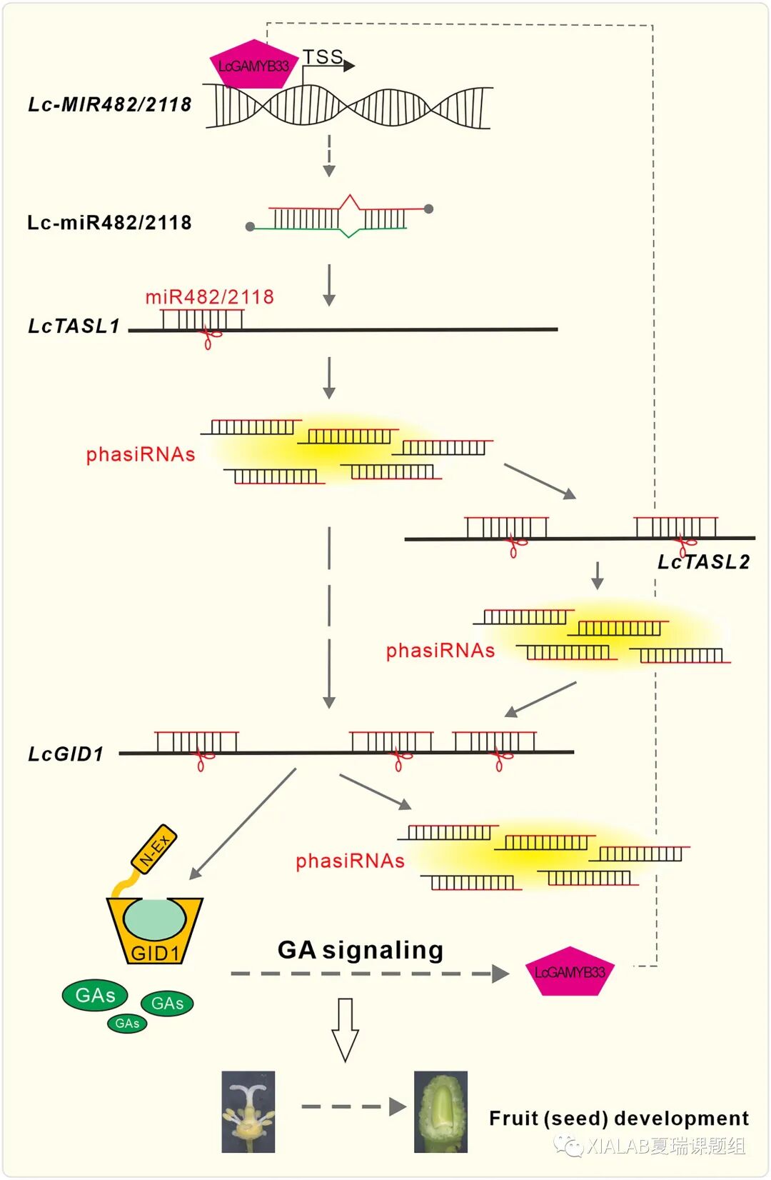 PBJ | 华农夏瑞课题组发现荔枝miR482/2118靶向非编码PHAS基因产生phasiRNA调控GID1参与GA信号传导