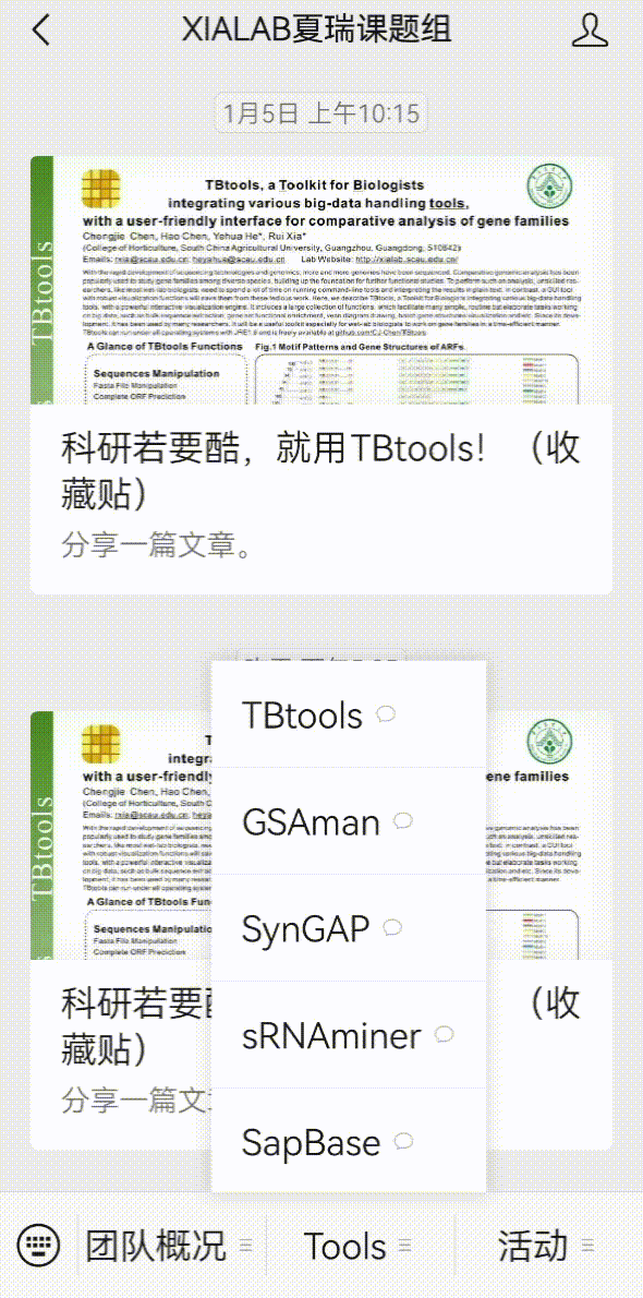你也可以在关注微信公众号【XIALAB夏瑞课题组】,在微信公众号对话框下方点击【Tools】,选择你想要了解的软件,获取二维码(内有详细得下载方式和使用链接)更方便保存分享噢!